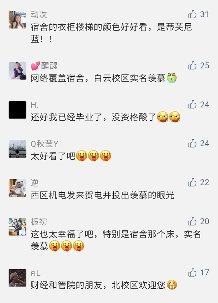 開學(xué)前幾天,學(xué)校公眾號發(fā)布的一篇《入學(xué)指南》文章,主要介紹學(xué)校環(huán)境、學(xué)習(xí)環(huán)境、運動場所、飲食衛(wèi)生、住宿條件、來校報道前的準(zhǔn)備。其中宿舍條件引起了學(xué)生們的注意,評論區(qū)一堆羨慕的小伙伴。