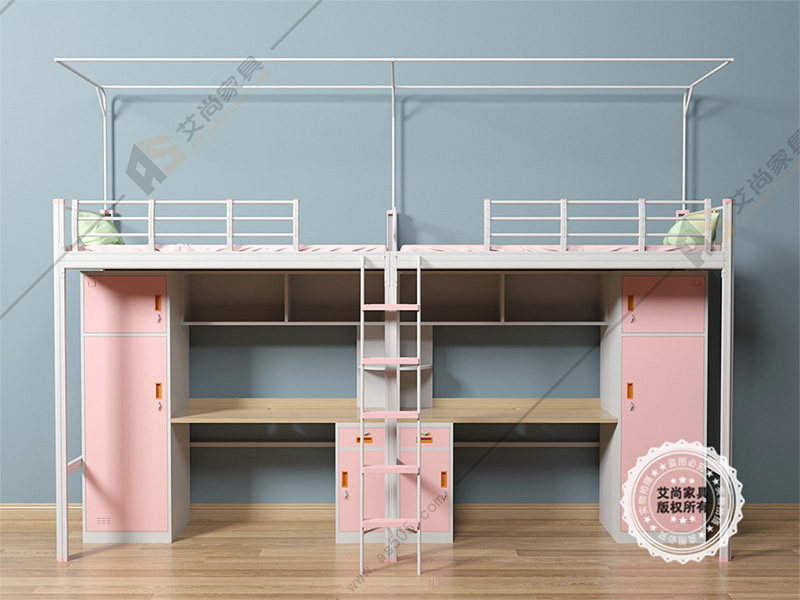 粉色少女心系列,這款學(xué)生公寓床是專(zhuān)為女學(xué)生而設(shè)計(jì),采用粉色為主色調(diào),深得校園女生喜愛(ài),適用大學(xué)、四人間-6人間宿舍