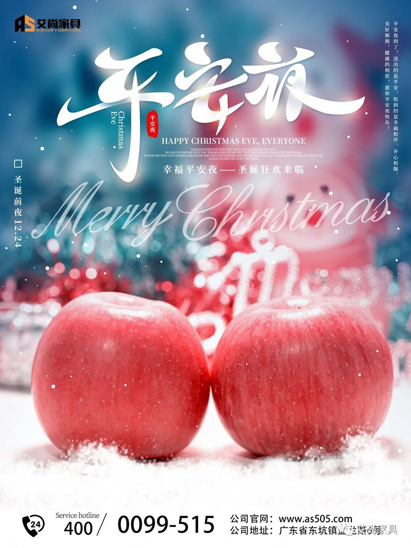 因?yàn)?/span>蘋(píng)果的“蘋(píng)”與平安的“平”同音,于是中國(guó)人寓以蘋(píng)果“平安”的吉祥含義,于是就有了平安夜送蘋(píng)果的習(xí)俗。平安夜來(lái)臨時(shí),“盛裝打扮”的蘋(píng)果悄然傳遞“平安”祝福;艾尚家具也借此平安夜之際送給每位員工紅蘋(píng)果!紅:代表你的事業(yè)紅紅火火;蘋(píng):代表你的生活平平安安;果:代表你的夢(mèng)想開(kāi)花結(jié)果,愿你的每份努力都有成果!