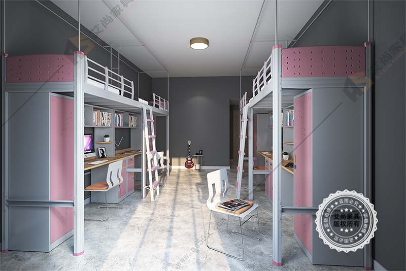 艾尚家具集體公寓床還經(jīng)過酸洗、除銹、表調(diào)、磷化、靜電噴粉、高溫固化,6道工序加工,200度高溫烘箱固化后,防腐能力變強(qiáng),即使在潮濕環(huán)境中使用也不生銹。