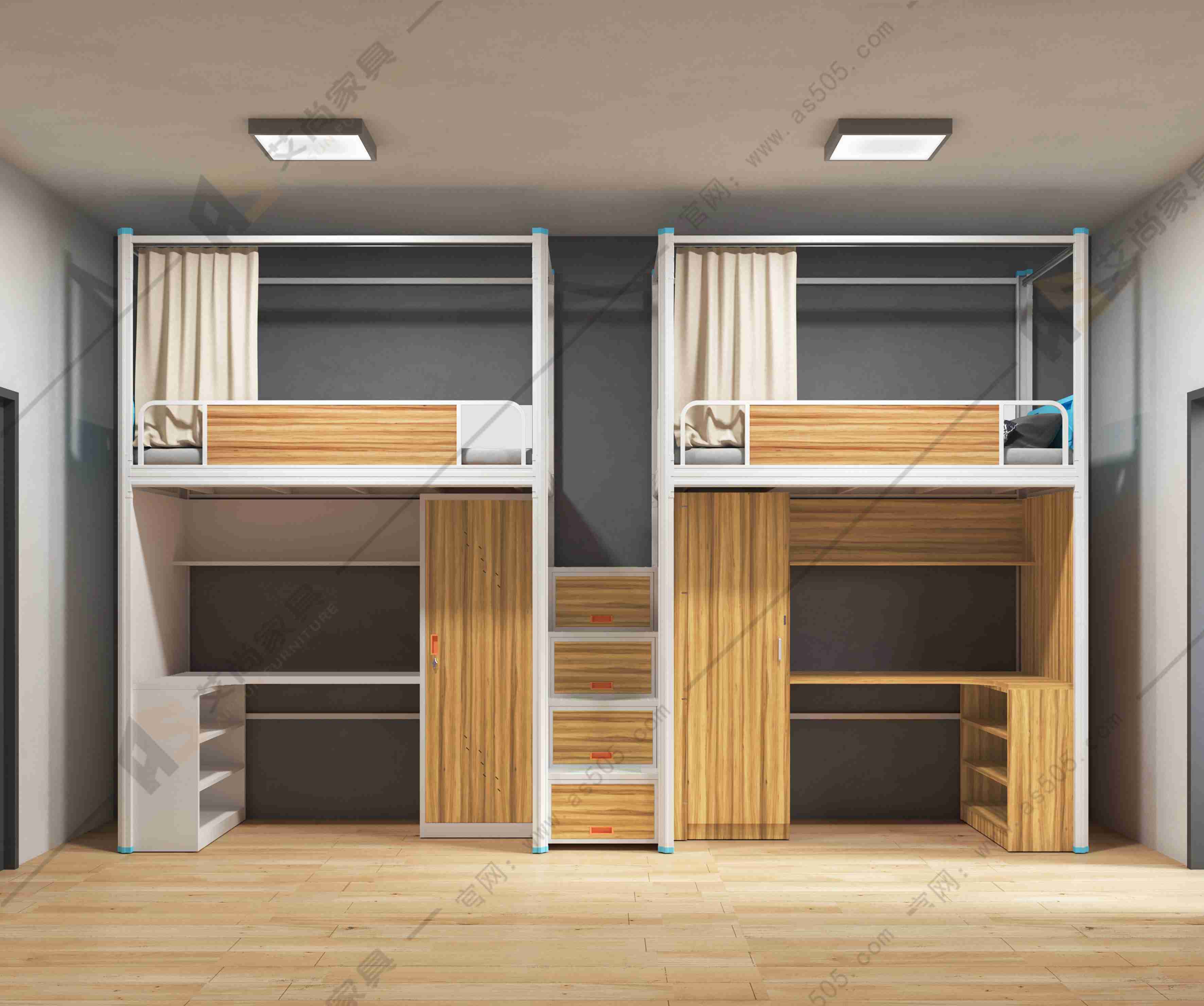 公寓床又稱組合床,由床、書桌、儲物柜三者組合而成,上方的床用來睡覺,而下方的書桌用來學習和娛樂,儲物柜讓凌亂的小物品和衣物有了“容身之所”。