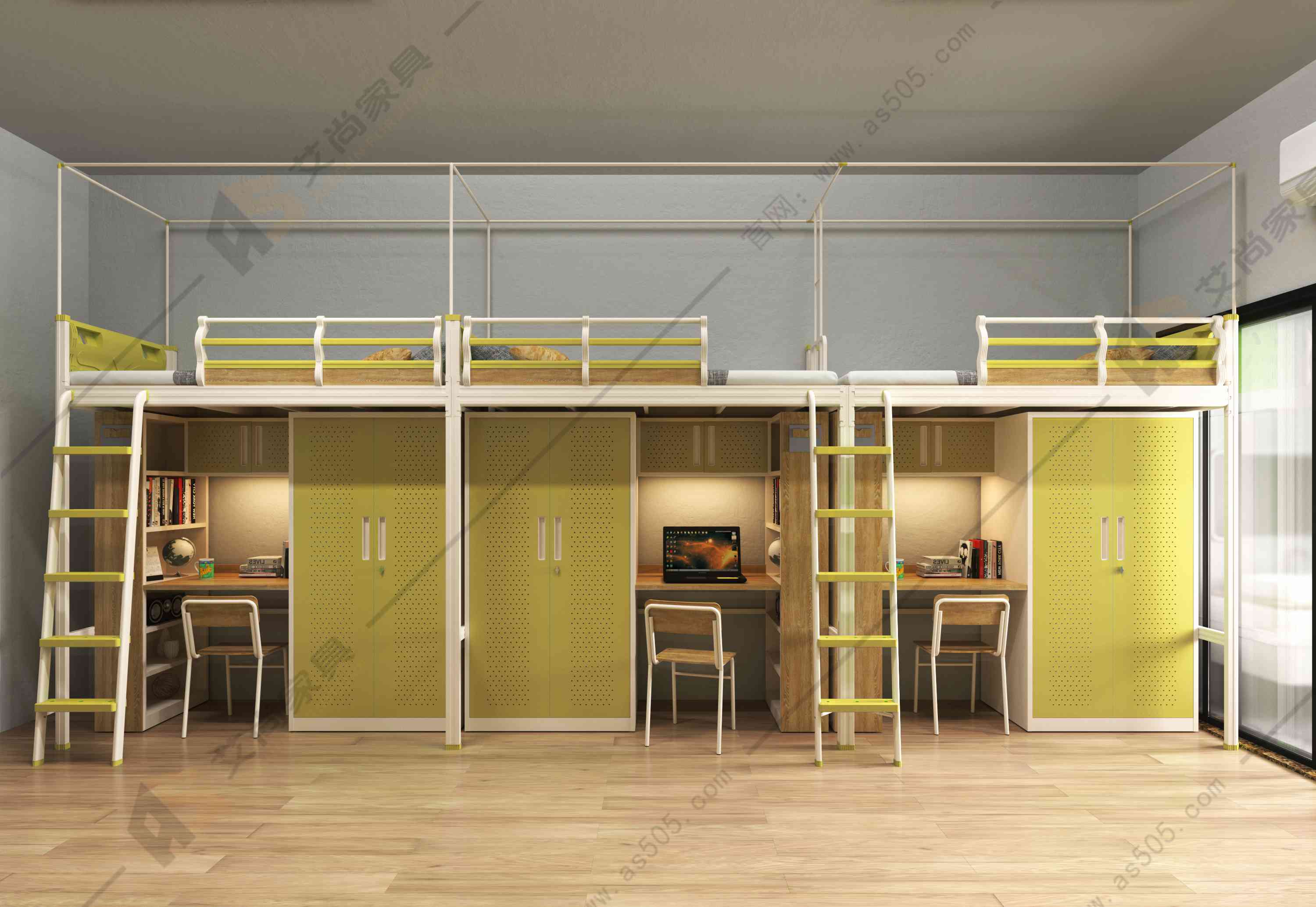 為了滿足員工的日常需求,公寓床具有多種功能。 一方面要滿足休息和睡眠的基本要求,另一方面要滿足休閑、工作、著裝和儲(chǔ)藏的綜合需求。 公寓床根據(jù)這些需要,上面有床,下面有寫字臺(tái),書柜,衣柜。顏色可按需搭配,風(fēng)格時(shí)尚。