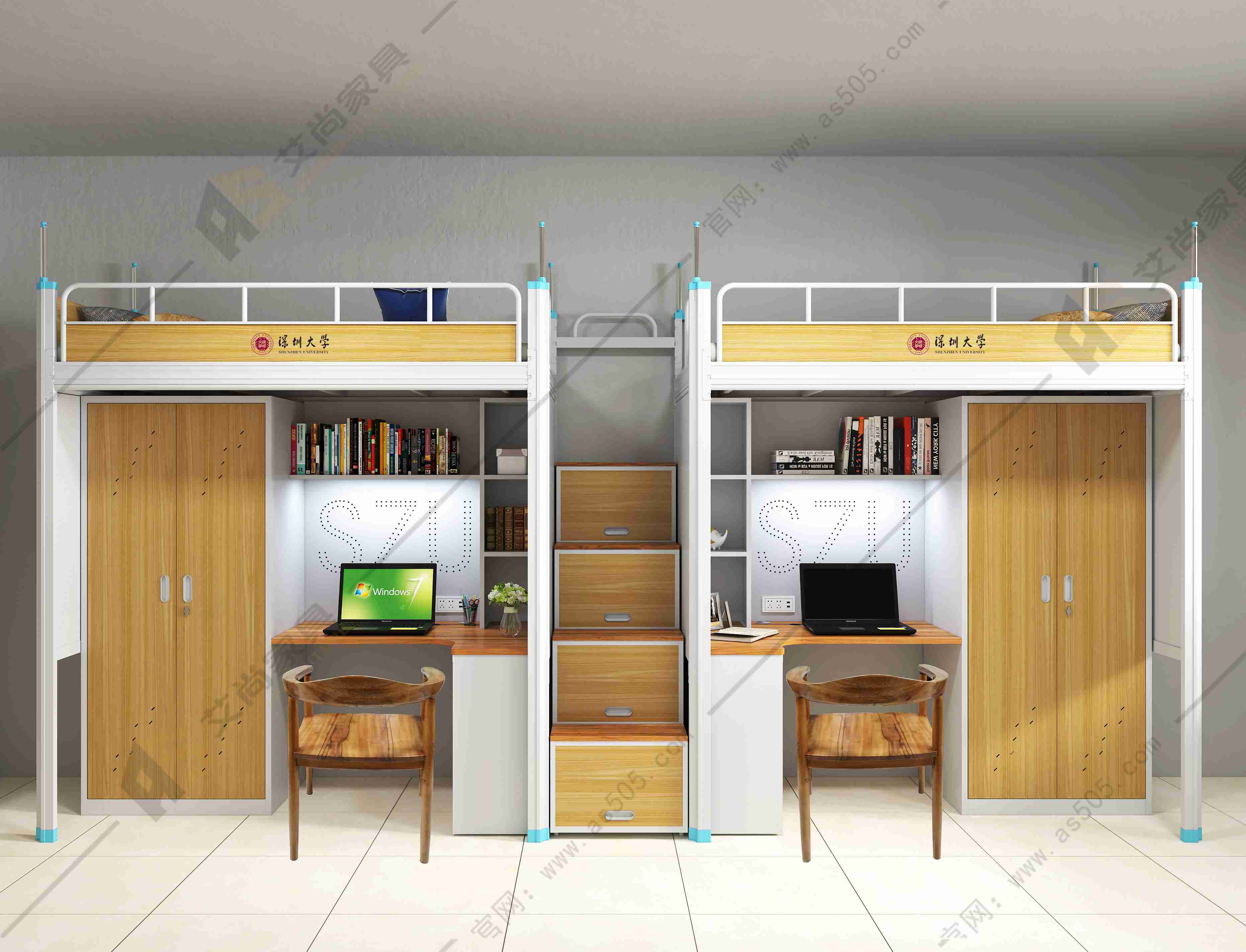 公寓床可利用小空間,組合衣柜、鞋柜、書桌。 自成一體,使個(gè)人的復(fù)雜需求得以解決,從而實(shí)現(xiàn)多功能存儲(chǔ)功能。