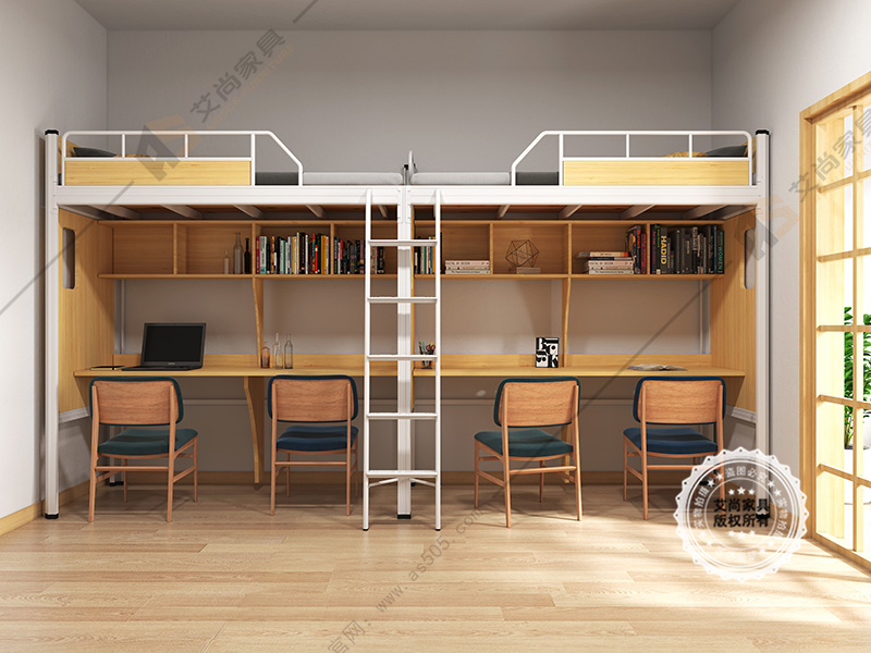 公寓床的書桌和書柜不但滿足了學(xué)生日常學(xué)習(xí)、休閑的生活,而且可以擺放各類書籍 、植物盆栽等物品,衣櫥的分區(qū)設(shè)計,讓空間利用做到整齊有序。學(xué)生公寓床由于是立體空間組合,增加了床的功能,還節(jié)省了宿舍的空間,使宿舍整齊劃一美觀,便于學(xué)校管理。