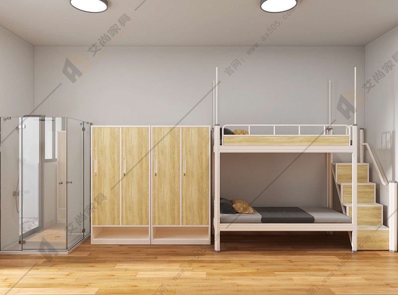 艾尚宿舍上下床可增加儲(chǔ)物柜,在集體宿舍的狹小空間里見(jiàn)縫插針,無(wú)論是床頭還是床下,都能合理規(guī)劃,給使用者創(chuàng)造一個(gè)整潔有序的收納空間。衣柜也可按需配置,定制指紋鎖,降低使用者財(cái)產(chǎn)遺失風(fēng)險(xiǎn)。