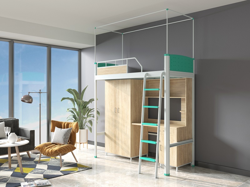 宿舍公寓床又叫宿舍組合床,可以靈活多變,多種顏色款式任您選擇,功能多樣,如儲物柜、書桌、衣柜、鞋柜等,可塑造出不同類型的學(xué)習(xí)與休息環(huán)境。上床下桌的設(shè)計,既方便我們學(xué)習(xí),又方便創(chuàng)造屬于自己的私人空間。