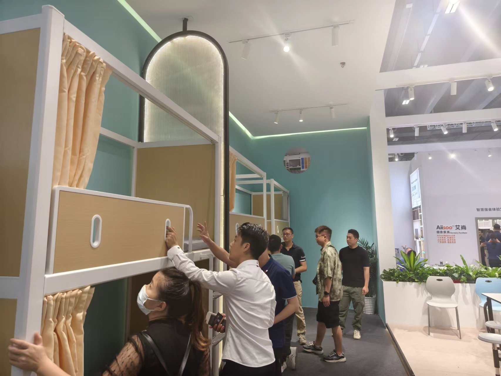展會(huì)期間,艾尚家具的展館始終人潮涌動(dòng),熱鬧非凡。其中,宿舍公寓床系列新品尤為引人注目。