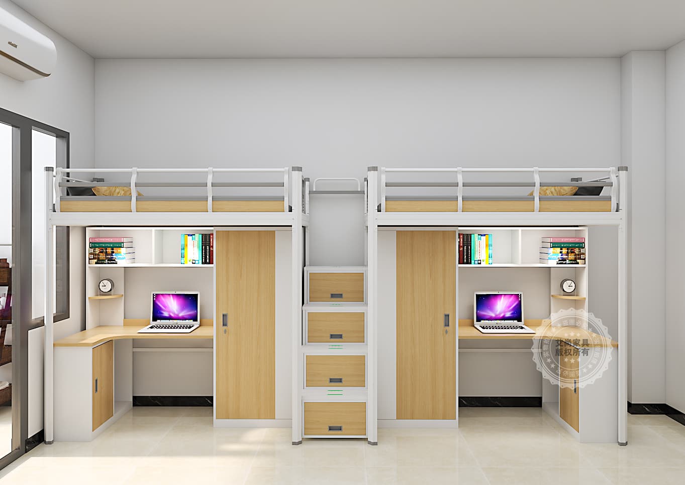 高效利用空間是公寓床最核心的優(yōu)勢。它打破傳統(tǒng)家具平面擺放的局限,向上挖掘垂直空間潛力,以上床下桌、雙層床等經典設計,實現(xiàn)“1㎡承載多重需求”的魔法。在20平方米左右的學生宿舍,上床下桌式公寓床讓上層成為靜謐的睡眠區(qū),下層整合書桌、書架與衣柜,不僅避免了床具與書桌分散擺放的雜亂,更釋放出充足地面空間,可放置行李箱、運動器材,讓宿舍活動不再局促。對于8㎡的都市單間,連體公寓床更是能打造“睡眠+辦公+儲物”三合一的全能空間,完美適配租房族的核心需求。