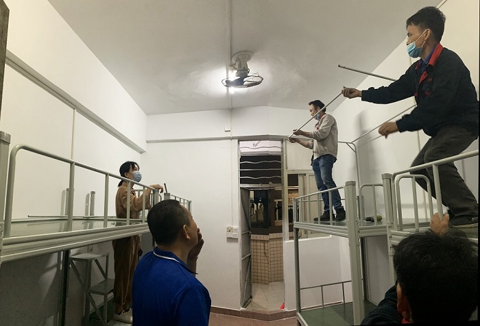 一棟樓員工宿舍雙層鐵床安裝!艾尚家具3天搞定