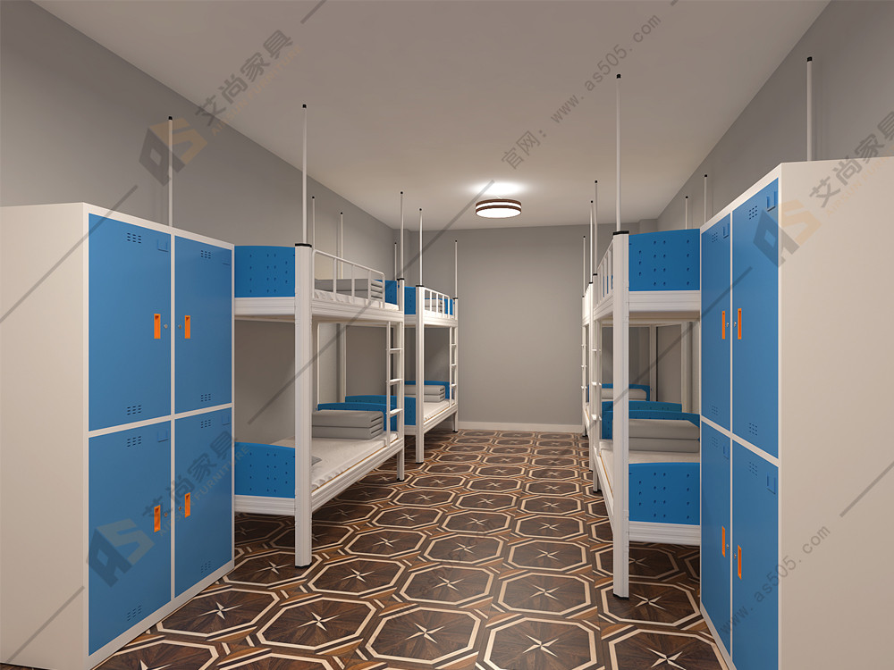 這是一款八人間配置方案,床的規(guī)格是1980*900*1800加上蚊帳桿的高度800整體高度就是2600。