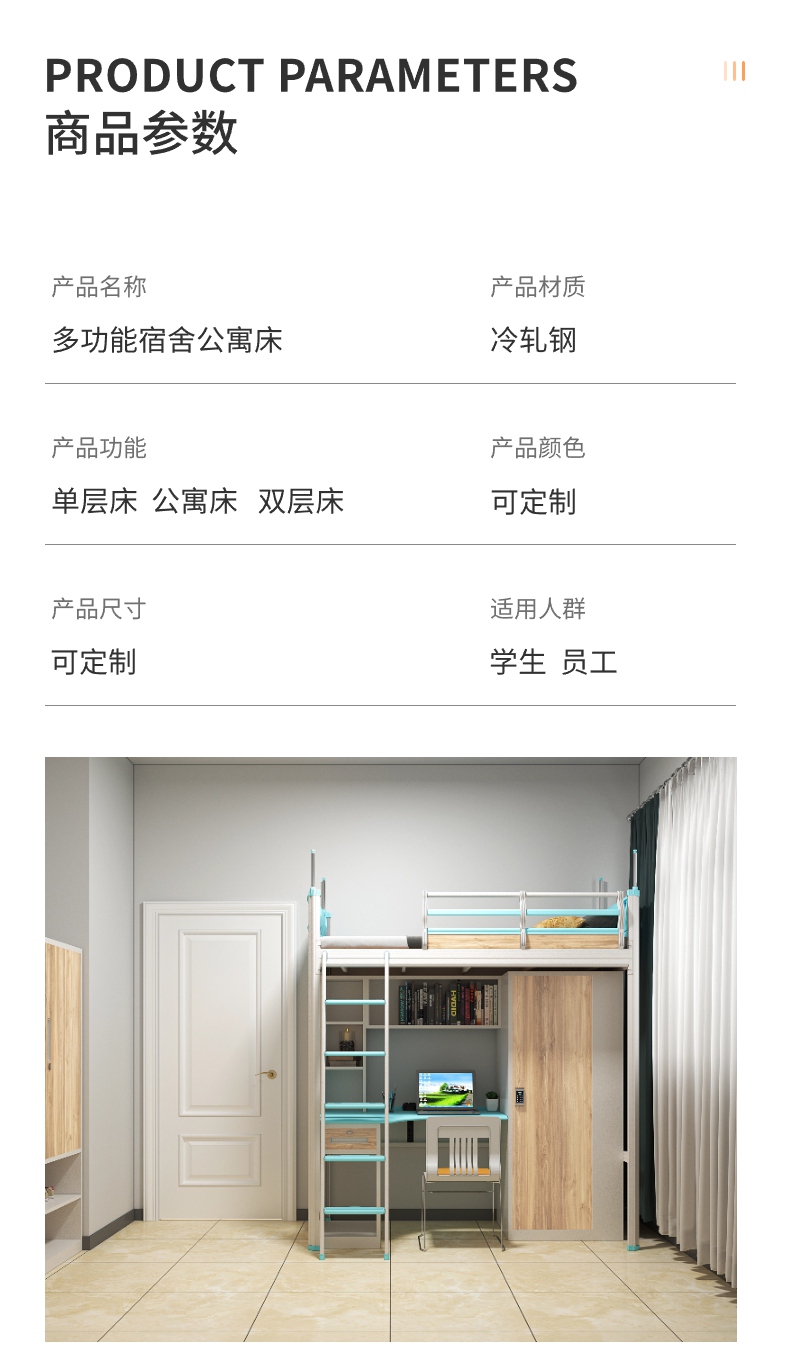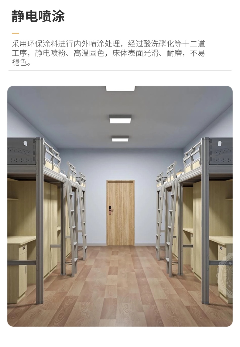 產(chǎn)品介紹: (尺寸可根據(jù)客戶(hù)要求定制),本產(chǎn)品顏色使用白色(顏色可按照客戶(hù)喜好定制),原材料使用1.2mm冷軋鋼板,床體承重500-1000kg,產(chǎn)品采用紙箱包裝防止運(yùn)輸途中磨損,產(chǎn)品適用范圍企業(yè)、單位、學(xué)校8人間宿舍均可適用。 本產(chǎn)品廠家質(zhì)保十年!